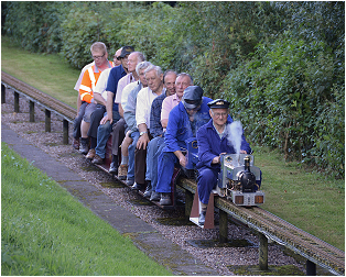 On the evening of Wednesday 20 July, we received a visit from 45 members of the BRANCH LINE SOCIETY, This required us to operate an intensive train service to accomodate the number of visitors, and with the heavy passenger loads most trains were 'double-headed'. The Branch Line Society is a UK based voluntary association for railway enthusiasts. It is a nationally spread organisation with a membership approaching 1000. It was establshed in 1955 and is widely recognised as Britain's leading amateur group for the study of railway infrastructure and history of networks. For more information on the Branch Line Society, you can visit their website at . . . http://www.branchline.org.uk/ |