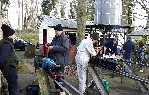 On a cold but dry, Tuesday 27 December 2016 we held what will probably be our final 'Christmas Steam Up' before we close down our railway next March. The event was well attended, and the low air temperature made for a lot of condensed steam from our steam locomotives ! Derek, our resident chef, was in attendance supplying his usual very tasty BBQ'd hamburgers. A most enjoyable last 'Christmas Steam Up' for both members and our guests. |