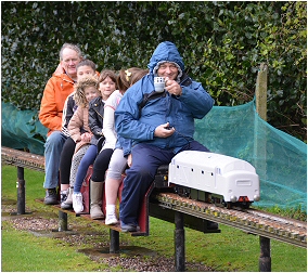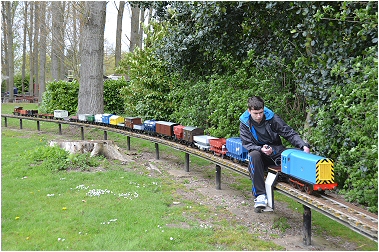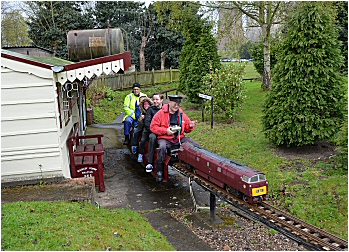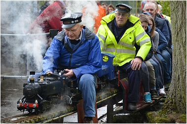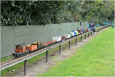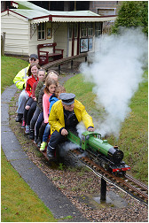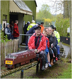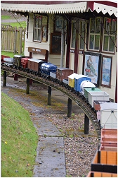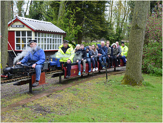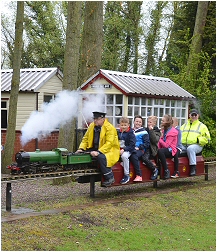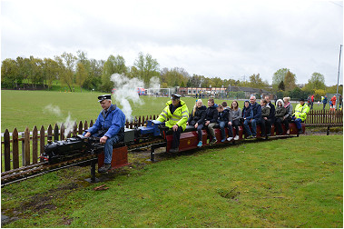 For what was a cold and very wet Bank Holiday Monday, there was still a steady stream of visitors for rides on our railway at the Rugeley Power Station Social Club 'FUN DAY'. Members just about managed to keep up with the demand at our station for rides behind one of our steam or electric locos. As well as passenger trains, one of the highlights of the day was a diesel hauled freight train, pulling no less than 23 hand built model trucks and freight wagons ! Over £90.00 was collected in donations for the Social Club. |