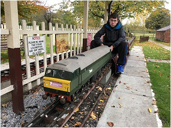 On Saturday 29 October 2016 several of our members visited the Wrexham Society of Model Engineers for their 'Day on the Diesels'. They reported that the facilities at Wrexham were excellent and that they had received a very warm welcome from the Wrexham members, and thoroughly enjoyed their day in the company of fellow 'diesel electric' model enthusiasts. The following photographs taken on the day include the unusual record of our chairman Derek Moore actually enjoying driving a diesel locomotive ! |
